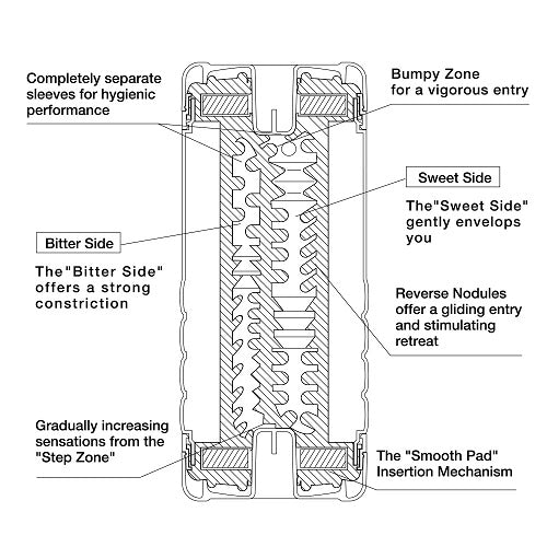 The Double Hole offers a selection of two different sensations - "Bitter", which tightens firmly and clenches around your penis, making for incredibly intense orgasms, or "Sweet", which softly clings and caresses.